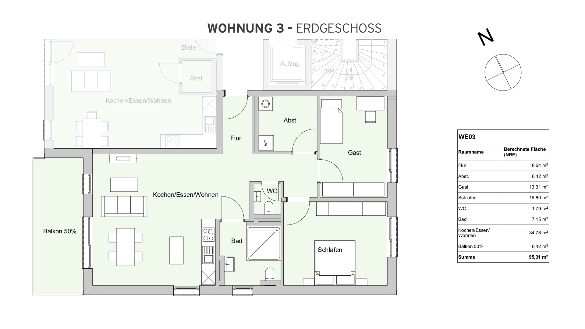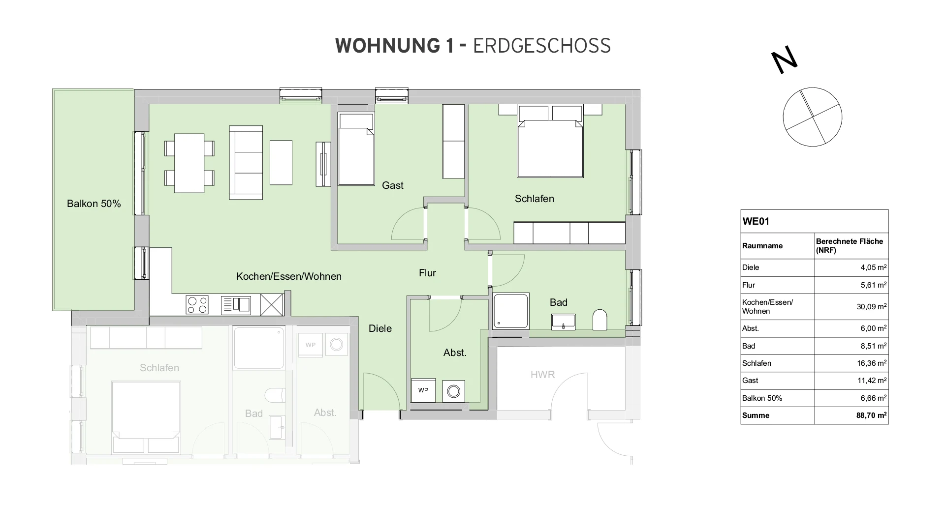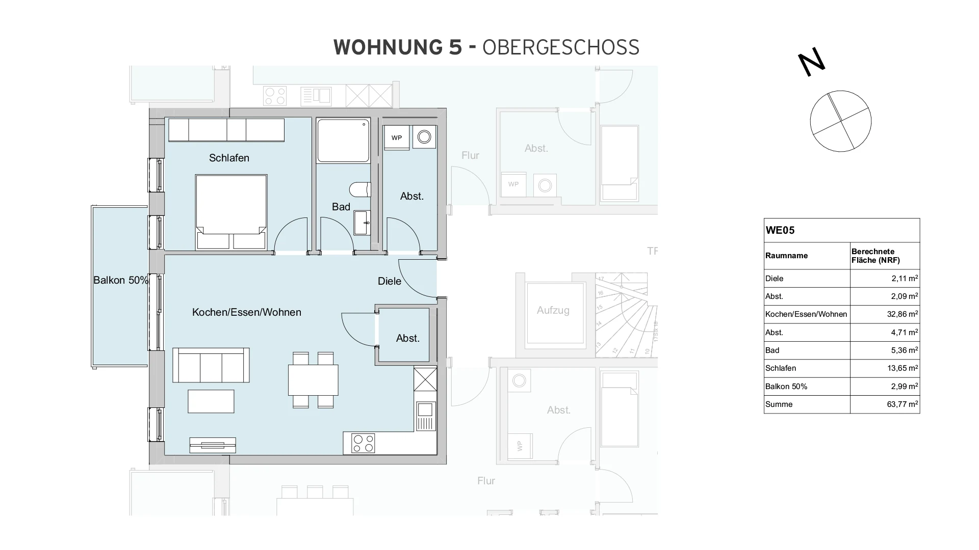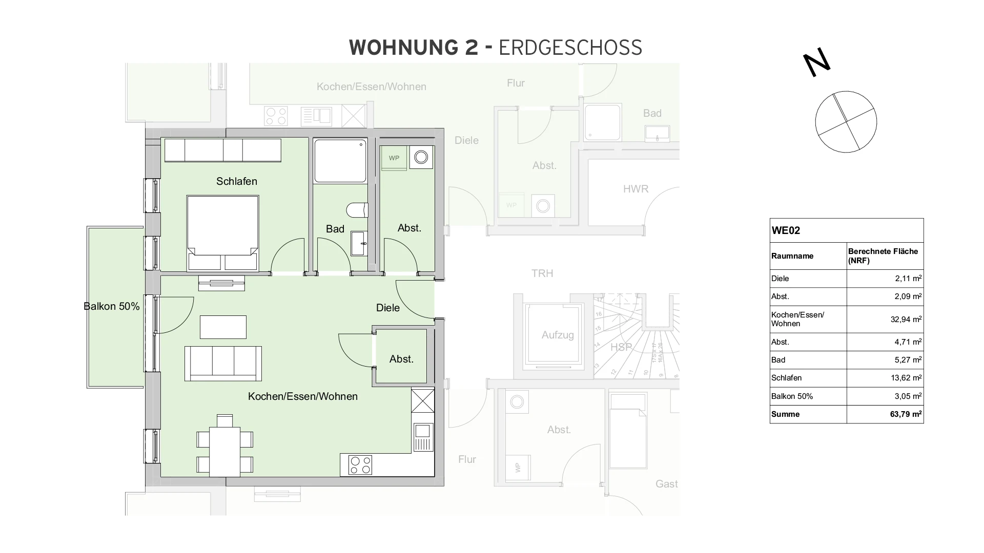 Ob als neues Zuhause für Paare, Familien oder als Kapitalanlage – die Eigentumswohnungen bieten ein vielseitiges Wohnkonzept mit zeitgemäßer Ausstattung und energieeffizienter Haustechnik. Jede Wohnung wird autark durch eine eigene Wärmepumpe beheizt und mit Warmwasser versorgt. Die Fußbodenheizung sorgt für behagliche Wärme, schwellenarme Zugänge und ein Aufzug ermöglichen komfortables, barrierearmes Wohnen.